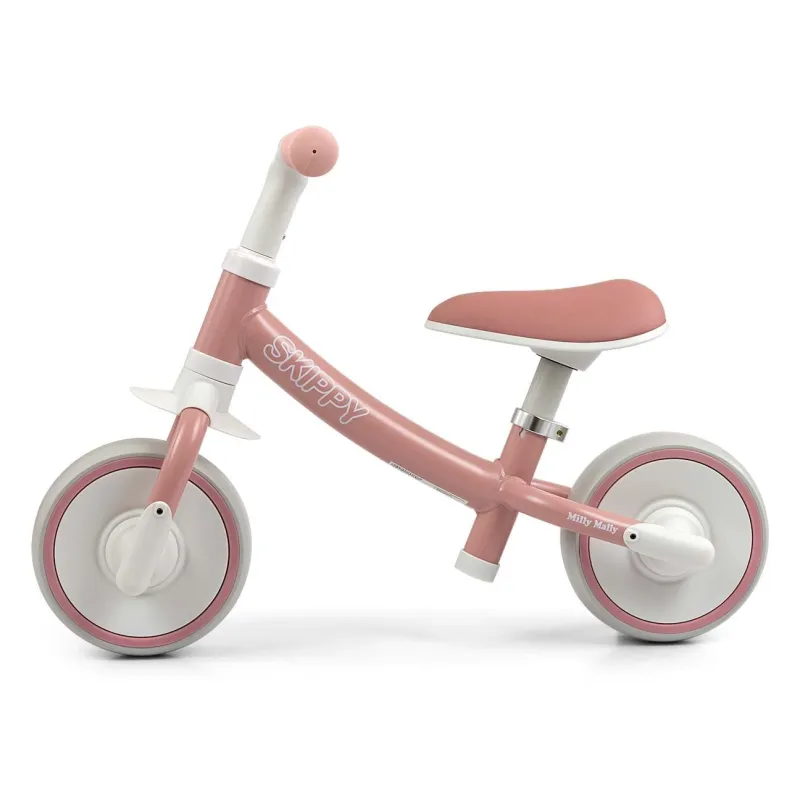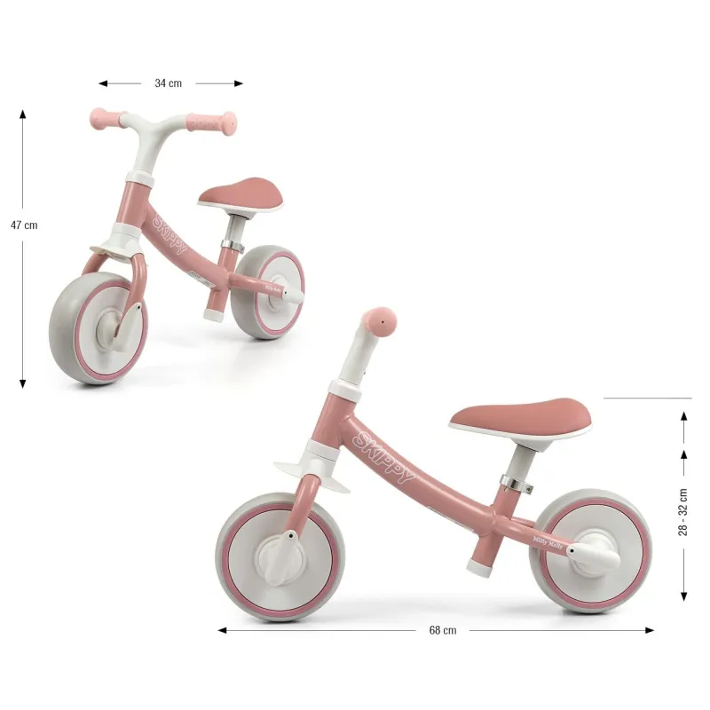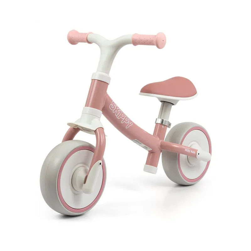 Milly Mally Skippy balansinio dviratuko ergonomiška forma suteikia neprilygstamą komfortą važiuojant ir taisiklingą vaiko laikyseną. Tinka vaikams nuo 18 mėnesių.