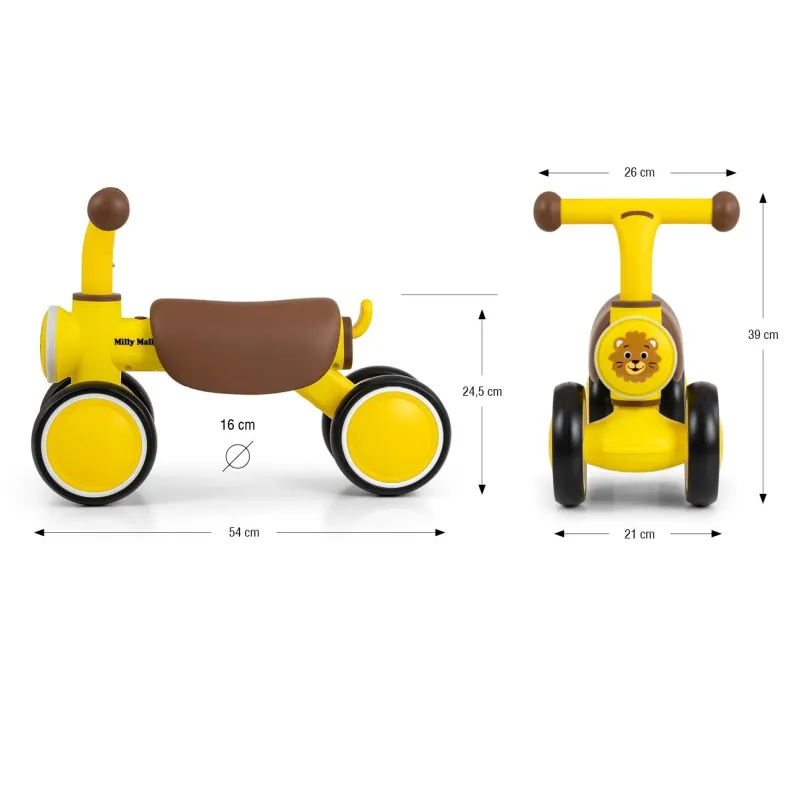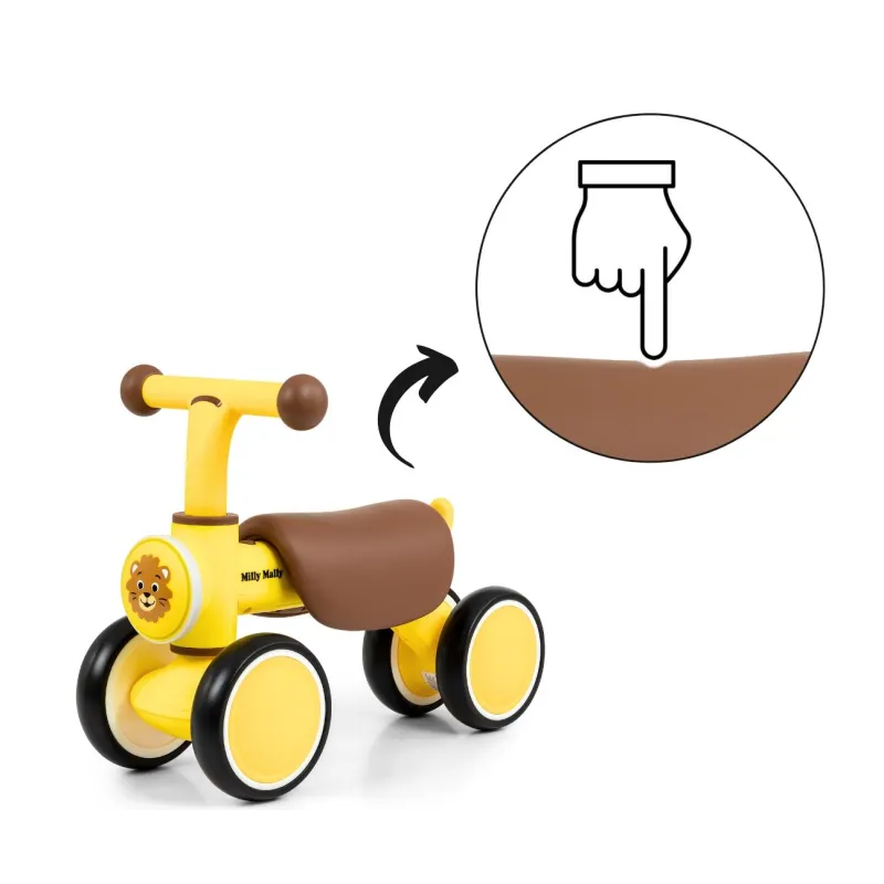 Dėl stabilios keturių ratų konstrukcijos mažyliai gali užtikrintai pradėti savo važiavimo nuotykius, natūraliai ir maloniai lavinti pusiausvyrą ir motorinę koordinaciją. Lengvas rėmas leidžia vežimėlį lengvai nešti ir manevruoti, o patogi, minkšta sėdynė užtikrina komfortą net ir ilgo žaidimo metu.