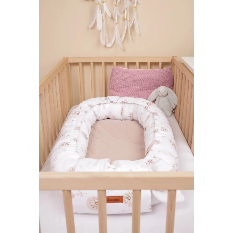 Lovelėje – kokonas apsaugo nuo kietų lovelės sudedamųjų dalių, o aukšti kokono kraštai leidžia lengviau paguldyti vaiką ant šono;