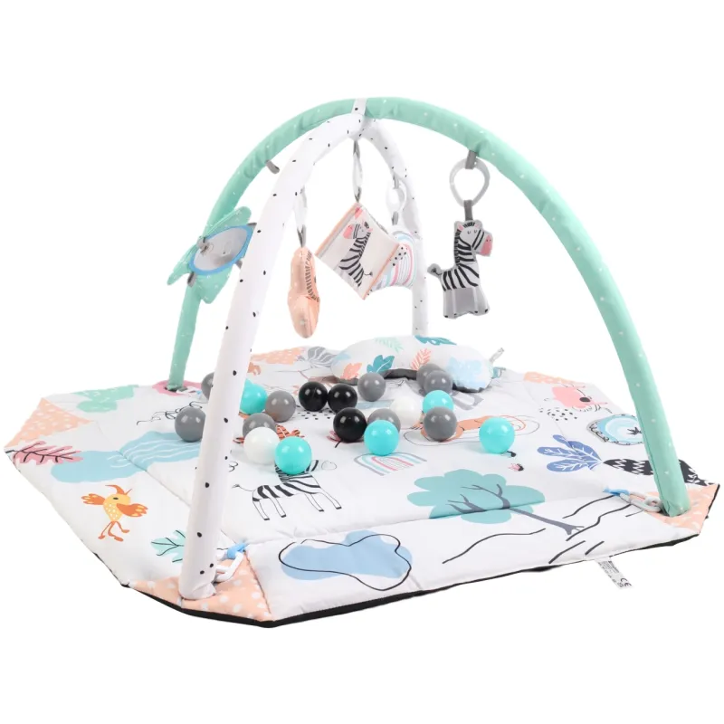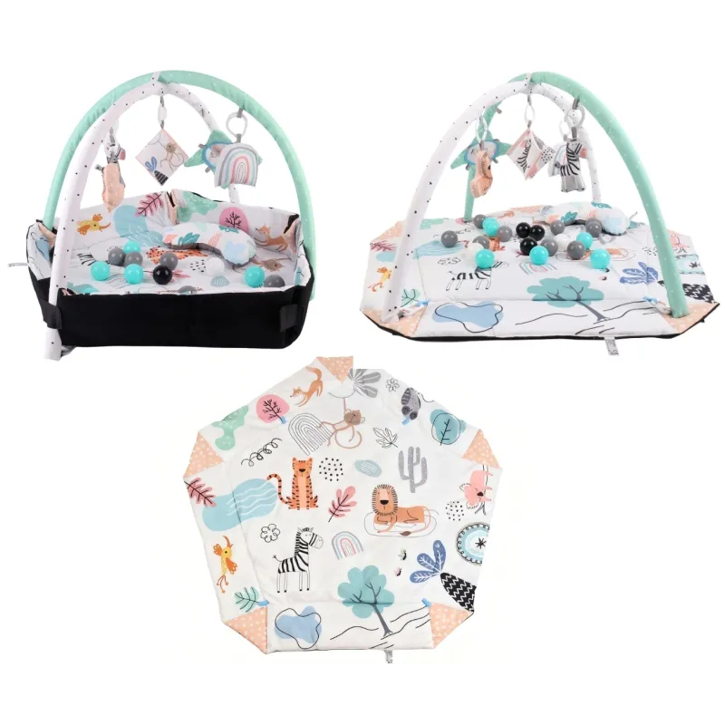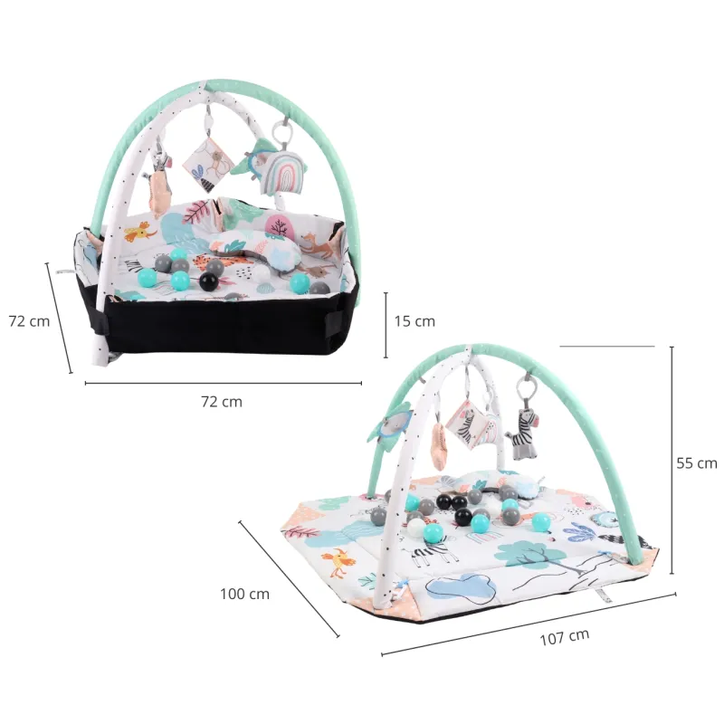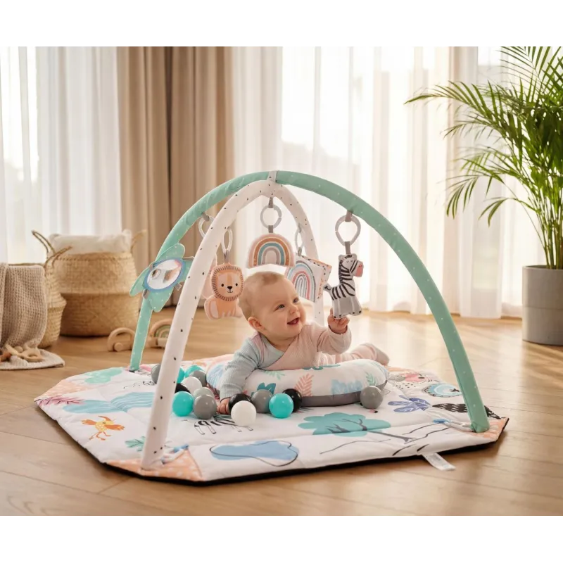 TinyMini žaidimų kilimėlis yra daugiafunkcis žaidimų kilimėlis kūdikiams, kuris padeda jiems vystytis nuo pirmųjų gyvenimo dienų (0+). Jis derina žaidimą, saugumą ir sensorinę stimuliaciją, prisitaikydamas prie įvairių jūsų kūdikio vystymosi etapų. Kilimėlis atlieka kelias funkcijas: