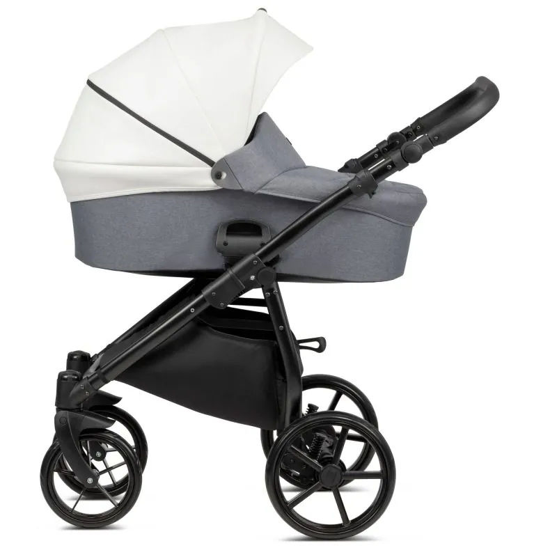 Komfortabla sēžamā daļa ar horizontālu pozīciju miegam.Sēžamās daļas pozīcijas maiņa.Sēžamās daļas saliekšana ar šasiju.Jumtiņš ar iebūvētu tīkliņu-ventilāciju.5 punktu drošības jostas.Regulējama augstuma eko-ādas kāju balsts.