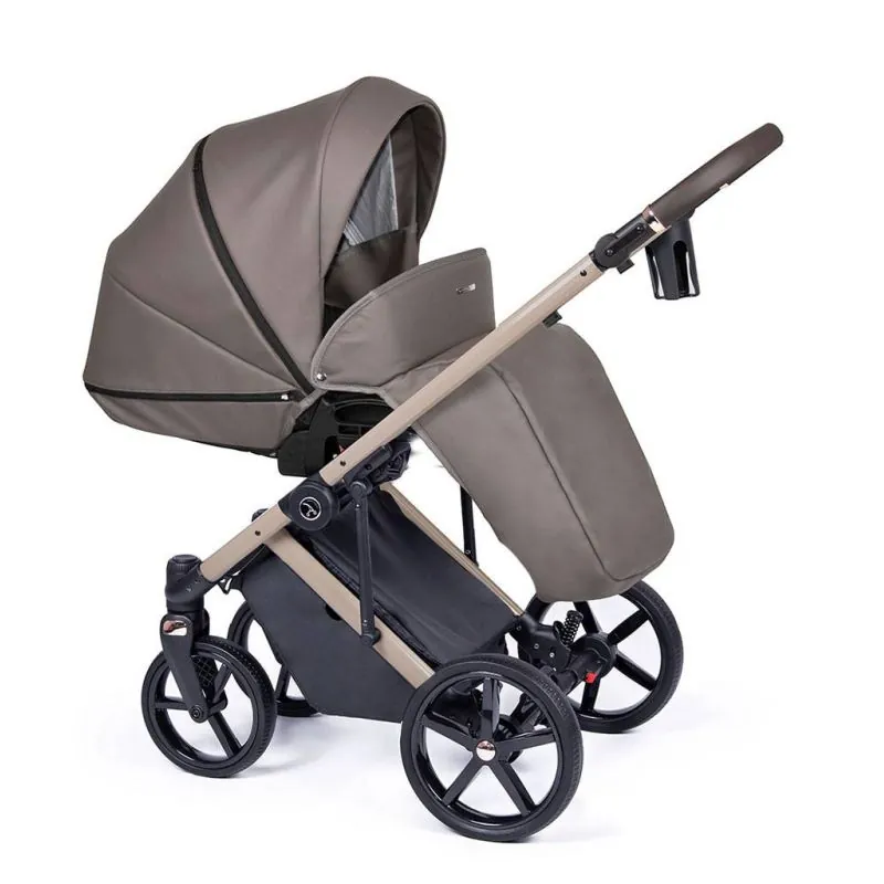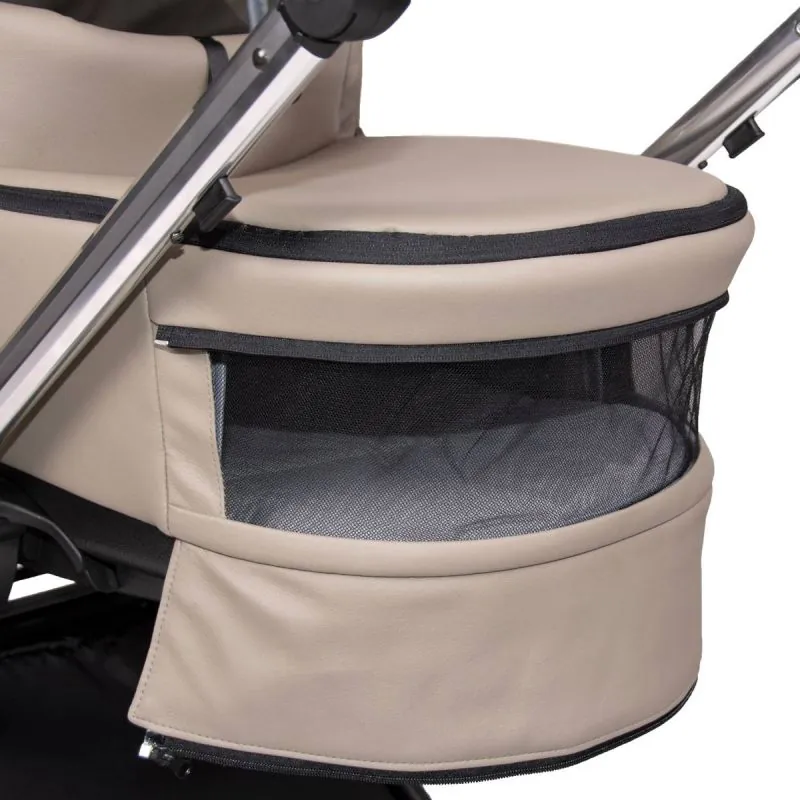Ergonomiska, liela un plaša;Kulba no kvalitatīvas eko ādas.Noņemama no rāmja ar atsevišķu pogu nospiešanu, tās nav jānospiež vienlaicīgi;Siltas un kvalitatīvas materiāli ar UV50+ saules aizsardzības filtru;Viegli elpojoši iekšējie audumi, kurus var izņemt mazgāšanai;Regulējams kulbas iekšējais atzveltne;Papildu regulējama ventilācija kulbas apakšā;Panorāmas logs ar tīklu kulbas aizmugurē nodrošinās gaisa cirkulāciju.Paaugstinātas kulbas sienas vēl drošākām ceļojumiem;Viegli regulējams, slēgts jumtiņš ar pagarināmu saules aizsardzības snīpi;Jumtiņa aizmugurējā daļā atveras papildu ventilācija ar tīklu;Silts kāju pārsegs ar iespēju atlocīt no vēja vai saules;Ir šūpošanas funkcija, kuru var apturēt, noliekot kājiņas;Ērts nesšanas rokturis kulbas augšpusē apvilkts ar eko ādu;