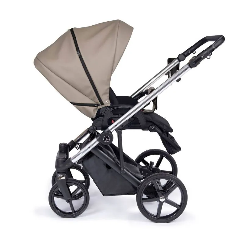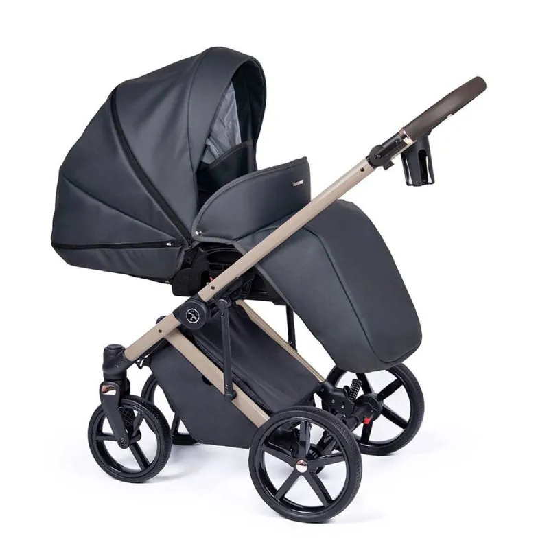 Ergonomiska, liela un plaša;Kulba no kvalitatīvas eko ādas.Noņemama no rāmja ar atsevišķu pogu nospiešanu, tās nav jānospiež vienlaicīgi;Siltas un kvalitatīvas materiāli ar UV50+ saules aizsardzības filtru;Vieglāk elpojoši iekšējie audumi, kurus var izņemt mazgāšanai;Regulējams kulbas iekšējais atzveltne;Papildu regulējama ventilācija kulbas apakšā;Panorāmas logs ar tīklu kulbas aizmugurē nodrošinās gaisa cirkulāciju.Paaugstinātas kulbas sienas vēl drošākām ceļojumiem;Vieglāk regulējams, slēgts jumtiņš ar pagarināmu saules aizsargu;Jumtiņa aizmugurējā daļā atveras papildu ventilācija ar tīklu;Silts kāju pārsegs ar iespēju atlocīt no vēja vai saules;Ir šūpošanas funkcija, kuru var apturēt, atlocot kājiņas;Ērts nēsāšanas rokturis kulbas augšpusē, pārklāts ar eko ādu;