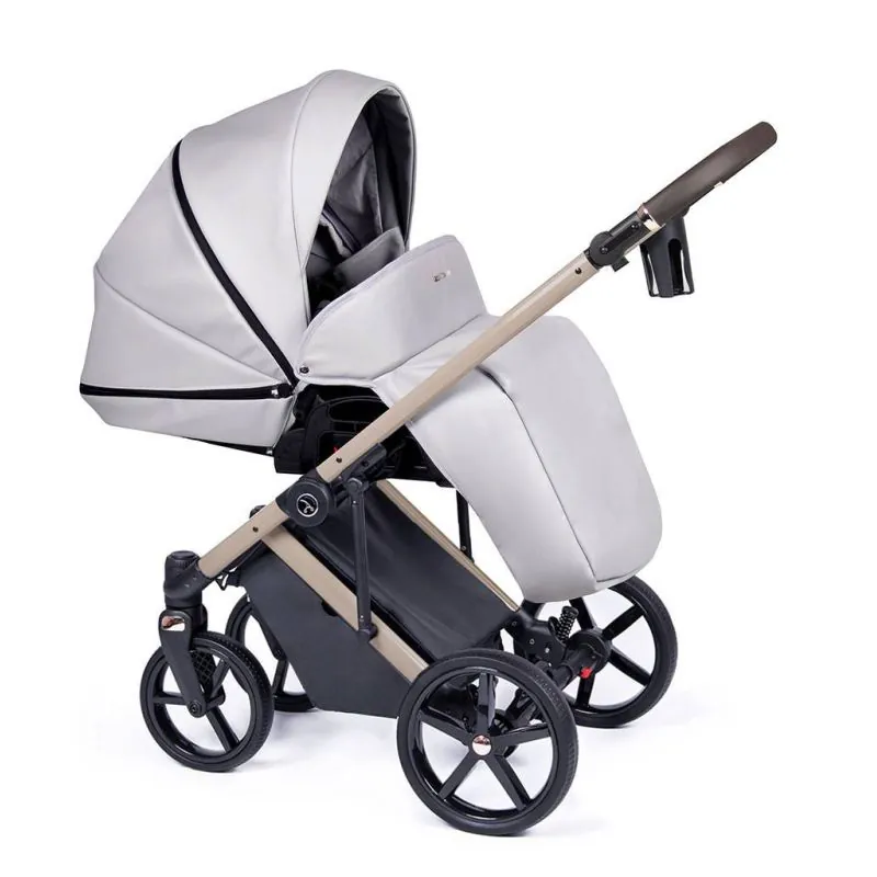 Ergonomiska, liela un plaša;Kulba no kvalitatīvas eko ādas.Noņemama no rāmja ar atsevišķu pogu nospiešanu, tās nav jānospiež vienlaicīgi;Siltas un kvalitatīvas materiāli ar UV50+ saules aizsardzības filtru;Vieglāk elpojoši iekšējie audumi, kurus var izņemt mazgāšanai;Regulējams kulbas iekšējais atzveltne;Papildu regulējama ventilācija kulbas apakšā;Panorāmas logs ar tīklu kulbas aizmugurē nodrošinās gaisa cirkulāciju.Paaugstinātas kulbas sienas vēl drošākām ceļojumiem;Vieglāk regulējams, slēgts jumtiņš ar pagarināmu saules aizsardzības snīpi;Jumtiņa aizmugurējā daļā atveras papildu ventilācija ar tīklu;Silts kāju pārsegs ar iespēju atlocīt no vēja vai saules;Ir šūpošanas funkcija, kuru var apturēt, atlocot kājiņas;Ērta nēsāšanas rokturis kulbas augšpusē pārklāts ar eko ādu;