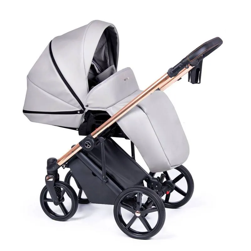 Ergonomiska, liela un plaša;Kulba no kvalitatīvas eko ādas.Noņemama no rāmja ar atsevišķu pogu nospiešanu, tās nav jānospiež vienlaicīgi;Siltas un kvalitatīvas materiāli ar UV50+ saules aizsardzības filtru;Viegli elpojoši iekšējie audumi, kurus var izņemt mazgāšanai;Regulējams kulbas iekšējais atzveltne;Papildu regulējama ventilācija kulbas apakšā;Panorāmas logs ar tīklu kulbas aizmugurē nodrošinās gaisa cirkulāciju.Paaugstinātas kulbas sienas vēl drošākām ceļojumiem;Viegli regulējams, aizvērts jumtiņš ar pagarināmu saules aizsardzības snīpi;Jumtiņa aizmugurējā daļā atveras papildu ventilācija ar tīklu;Silts kāju pārsegs ar iespēju atlocīt pret vēju vai sauli;Ir šūpošanas funkcija, kuru var apturēt, atlocot kājiņas;Ērts nēsāšanas rokturis kulbas augšpusē pārklāts ar eko ādu;