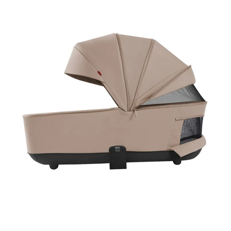 Panorāmas lodziņš kulbiņas aizmugurē, veicinās mazuļa pagriešanos uz vēdera un skatīšanos uz mainīgo skatu brauciena laikā, kā arī veicinās vingrošanu;