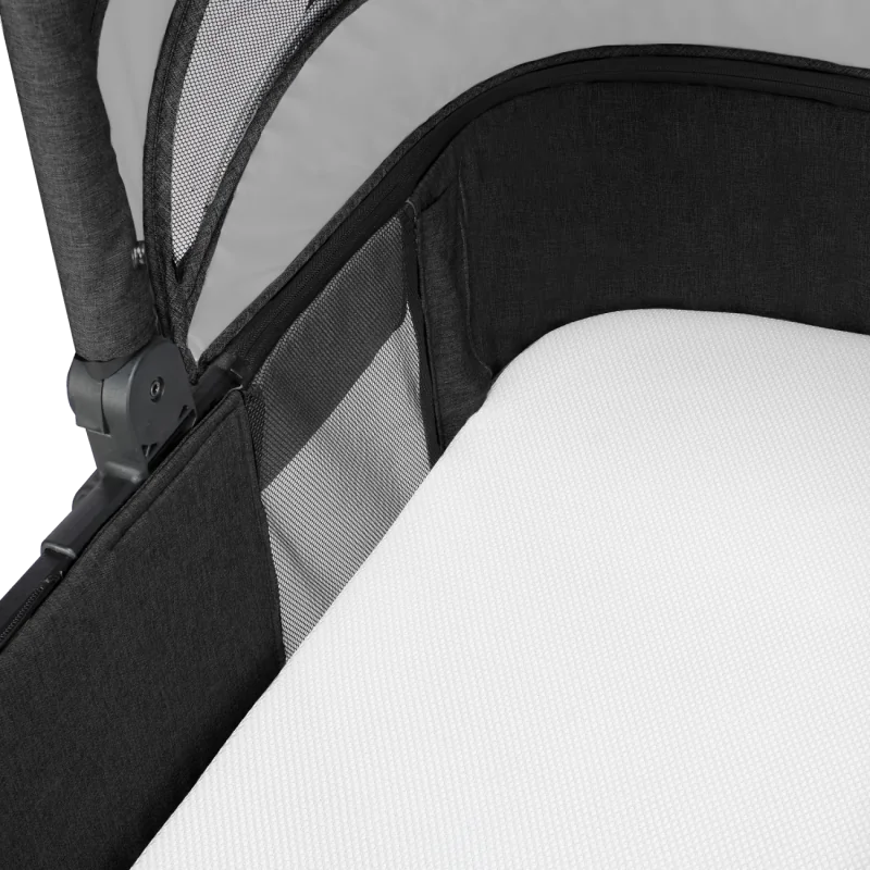 Plašs šūpulis ar ērtu matraci.Mīksts matracis ar atbilstoša biezuma kokvilnas pārvalku. Šūpuli var viegli un ātri salocīt līdz kompaktam izmēram.Ērta tīrīšana – iekšējo materiālu pietiek noslaucīt ar mitru drānu, bet matrača pārvalku var noņemt un izmazgāt.Šūpulim ir ērta kabata viedtālrunim.Pagarināts jumtiņš ar logu - nodrošina bērnam komfortu un aizsargā no lietus, vēja un saules. Aizmugurējā šūpuļa daļā esošais logs nodrošina atbilstošu ventilāciju.Vienmērīga ventilācija – gondolas sānos ir speciālas ventilācijas plāksnes, kas nodrošina pietiekamu gaisa cirkulāciju.Ergonomisks rokturis ļauj viegli nest bērnu šūpulī.