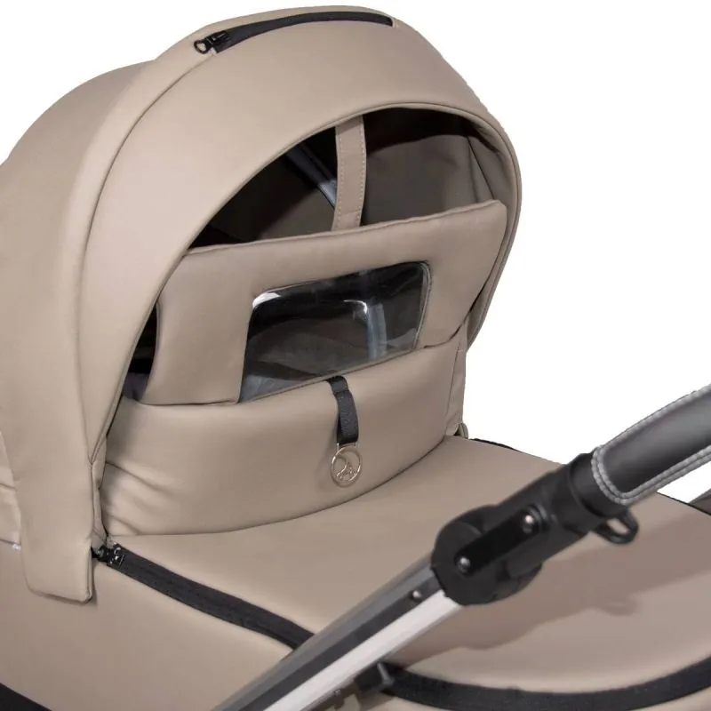 Ergonomisks, liels un plašs;Šūpulis no kvalitatīvas eko ādas.Noņemams no rāmja ar atsevišķu pogu nospiešanu, tās nav jānospiež vienlaicīgi;Siltas un kvalitatīvas materiāli ar UV50+ saules aizsardzības filtru;Vieglāk elpojoši iekšējie audumi, kurus var izņemt mazgāšanai;Regulējams šūpuļa iekšējais atzveltne;Papildus regulējama ventilācija šūpuļa apakšā;Panorāmas logs ar tīklu šūpuļa aizmugurē nodrošinās gaisa cirkulāciju.Paaugstinātas šūpuļa sienas vēl drošākām ceļojumiem;Vieglāk regulējams, aizvērts jumtiņš ar pagarināmu saules aizsargu;Jumtiņa aizmugurējā daļā atveras papildus ventilācija ar tīklu;Silts kāju pārsegs ar iespēju atvērt pret vēju vai sauli;Ir šūpošanas funkcija, kuru var apturēt, izvelkot kājiņas;Ērts nēsāšanas rokturis šūpuļa augšpusē, pārklāts ar eko ādu;