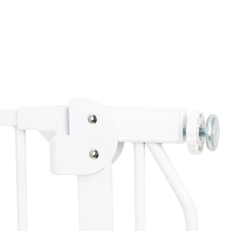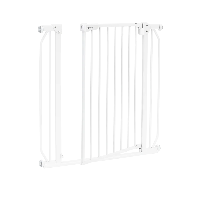 Vārti izgatavoti no augstas kvalitātes un izturīgiem materiāliem.Silikona gali neatstāj nekādas pēdas uz sienām.Funkcija AutoClose (atverot vārtus, tie aizveras, bloķējot drošības mehānismu).Atverot vārtus vairāk nekā 90 grādu leņķī, pāreja paliek atvērta un neaizveras automātiski, tāpēc varat būt mierīgi, ka bērni necietīs un netiks saspiesti.Dubultā vārtu aizsardzība bērnam neļaus tos atvērt.Drošas malas SecureCurve (nav asu malu).Vārti atveras uz abām pusēm.StretchKeep funkcija (regulējams platums: 75-105 cm).Piemērots atverēm (bez paplašinājuma): 75-85 cm.Vārtu platums: 76 cm.Vārtu augstums: 80 cm.Komplektā ir paplašinājumi (2 x 10 cm).Sertifikāts: SGS, EN 1930: 2011, EN 71-3: 2013 + A1: 2014.__ETS_EMBED_MQ==__