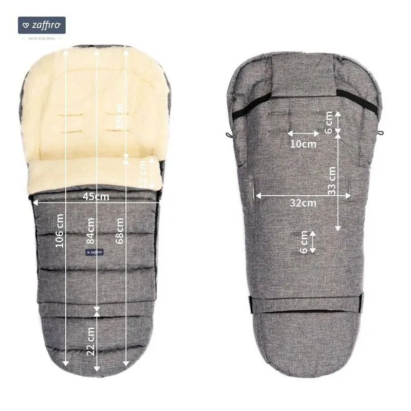 Universāli, piemēroti ratiņiem, auto sēdeklīšiem, kā arī ragavām.Ūdensnecaurlaidīgs ārējais materiāls nodrošina uzticamu aizsardzību pret vēju, lietu un sniegu.Var regulēt/mainīt maisiņa izmērus (saīsināt/pagarināt) atkarībā no bērna auguma. Maisiņa garums mainās no 83 līdz 106 cm.Atverams ar rāvējslēdzēju, tāpēc ērti bērnu izņemt/ielikt maisiņā.5 punktu drošības jostu atveres ļauj droši piestiprināt bērnu.Praktisks, silts un universāls. Lielisks risinājums gan jaundzimušajiem, gan vecākiem bērniem (0-3).Iekšpusē dabiskā aitas vilna, kas ir antialerģiska un ekoloģiska.Vilna – dabisks termoregulators, kas uztur normālu ķermeņa temperatūru.Izmēri: 84/106 x 45 cm.Ražots Polijā.