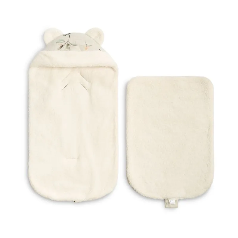 Konverts paredzēts ratiņiem vai automašīnas sēdeklītim. Tam ir vietas, lai ievērtu siksnas, tāpēc tas ir ļoti ērts lietošanai.