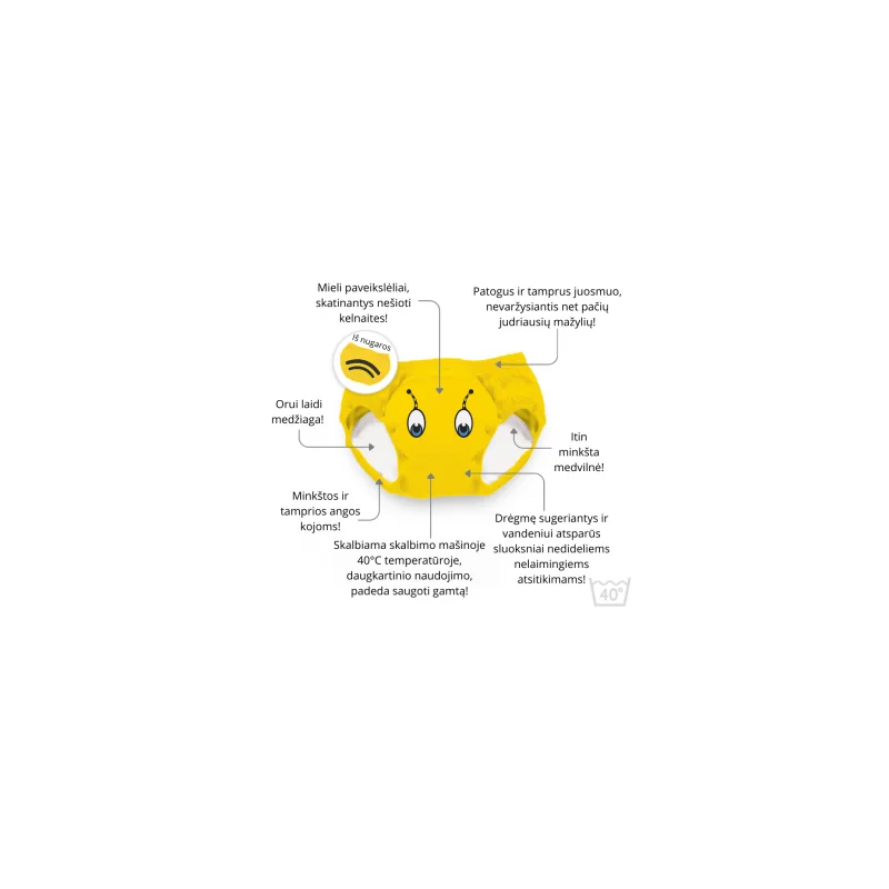 Apmācības biksīšu-atprastukių atgriešana nav atļauta, pat ja iepakojums nav atvērts (ja vien prece nav bojāta). Preces netiks uzskatītas par bojātām, ja netiks ievēroti kopšanas norādījumi.