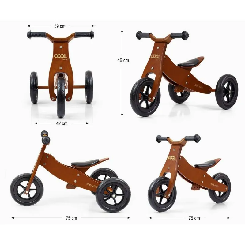 Milly Mally līdzsvara velosipēds/trīsriteņu velosipēds 2in1 Cool, Dark Natural