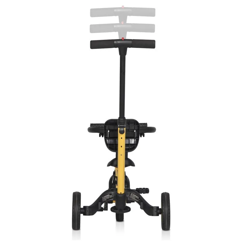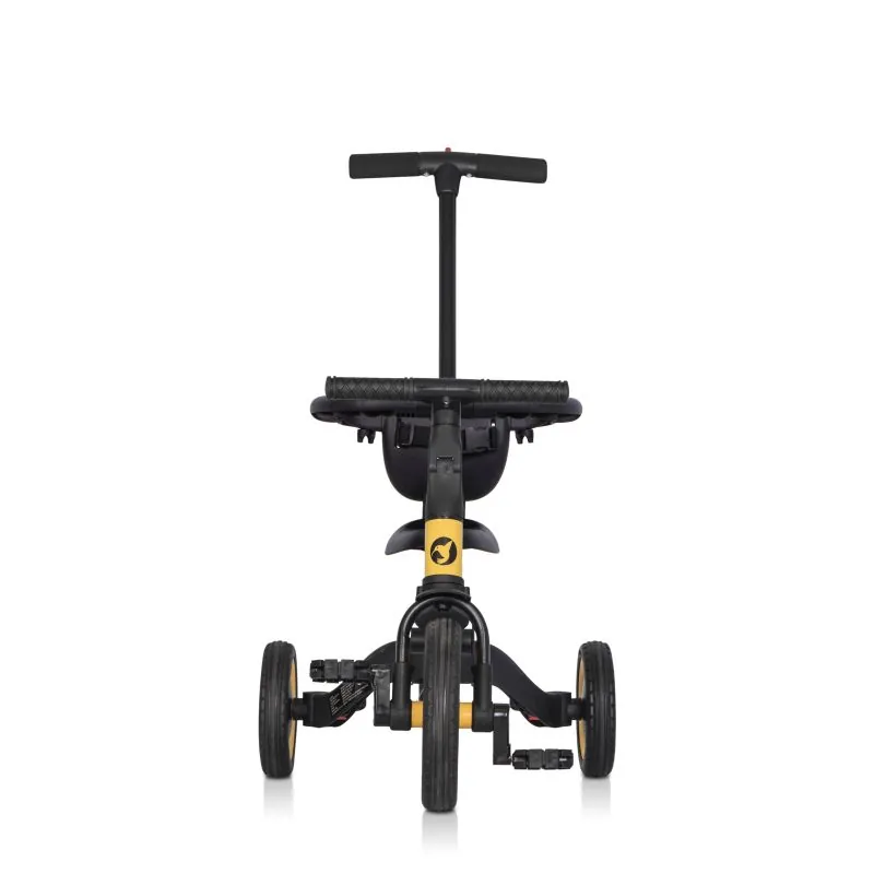 Šajā konfigurācijā trīsritenis aizstāj ratiņus. Sēdeklim ir atzveltne ar drošības jostām un gredzens, kas aizsargā bērnu. Trīsriteņa aizmugurē ir stumšanas rokturis ar 3 soļu augstuma regulēšanu, kas ļauj vecākiem ērti stumt un manevrēt trīsriteni. Šajā laikā bērna kājas ērti balstās uz pedāļiem, kas ir uzstādīti zem velosipēda rāmja, veidojot kāju balstu.