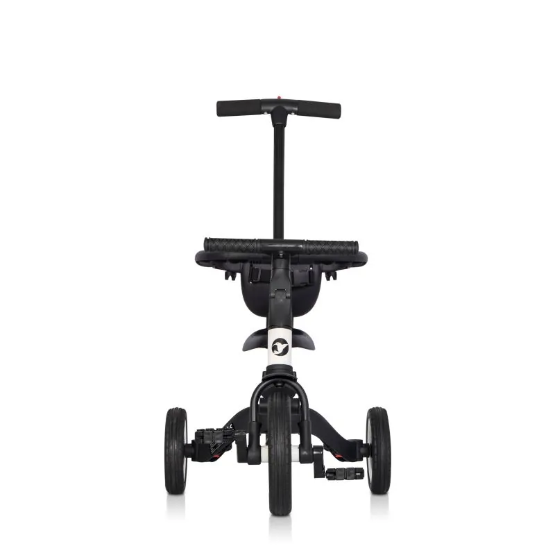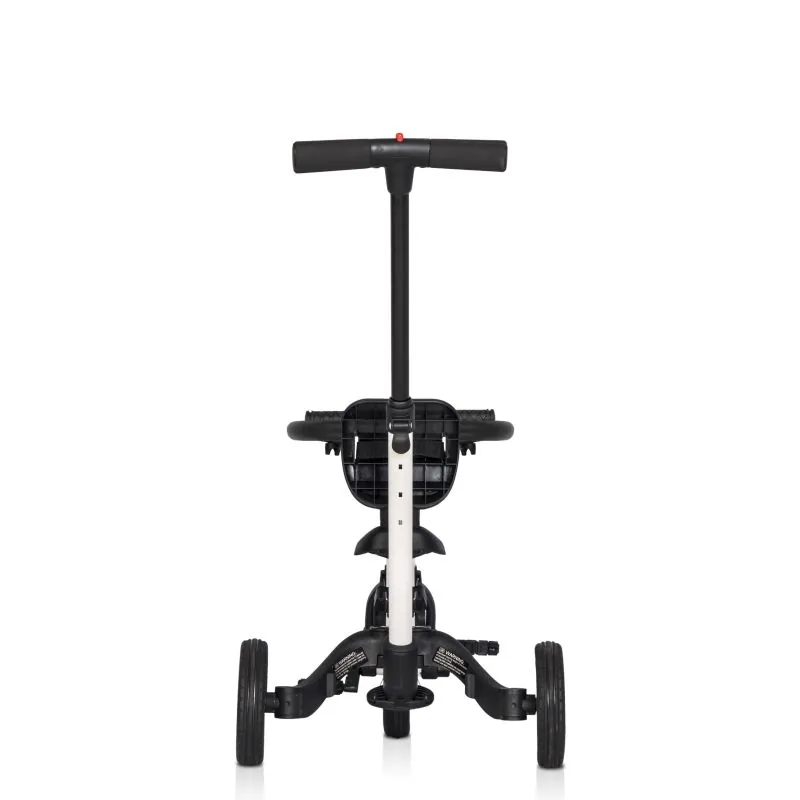4. Balansēšanas velosipēds – bērniem no 3 līdz 4 gadiem. Pateicoties jaunajai patentētajai sistēmai, nospiežot tikai 3 pogas un neizjaucot nekādus elementus, trīsritenim var pārvērsties par praktisku mācību balansēšanas velosipēdu. Vienkārši apvienojiet aizmugurējos riteņus vienā stabilā dubultritē un noņemiet pedāļus. Pedāļus var noņemt, nospiežot tikai vienu pogu un bez jebkādiem instrumentiem. Balansēšanas velosipēds tiek uzskatīts par labāko veidu, kā apgūt braukšanu ar velosipēdu. Jūsu bērns ātri iemācīsies noturēt līdzsvaru, un pāreja uz parasto velosipēdu būs tikai formalitāte. Šajā konfigurācijā pedāļi, atzveltne un stumšanas rokturis tiek noņemti.