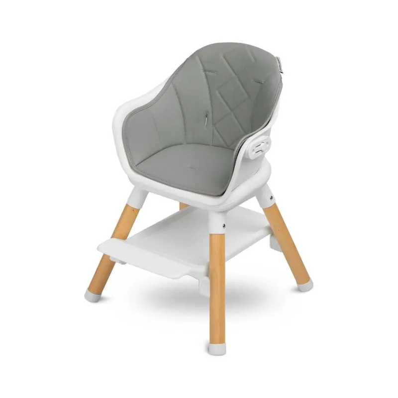 Mūsdienīgs, skandināvu dizains.Ilgmūžīga, izturīga konstrukcija.Augsts krēsliņš - lieliski piemērots, lai mācītos ēst pie viena galda ar vecākiem.Zems krēsliņš - lieliski piemērots zīmēšanai, klucīšu kārtošanai vai rakstīšanas mācībām.Izturīga un augstas kvalitātes plastmasas, koka masīva un eko ādas konstrukcija.Maksimālā lietotāja slodze - 15 kg.5 punktu drošības jostas.Noņemams paplāte.Viegli tīrāms krēsliņa pārvalks.Divas augstuma pozīcijas.Atbilst standartam: 14988:2017+A1:2020