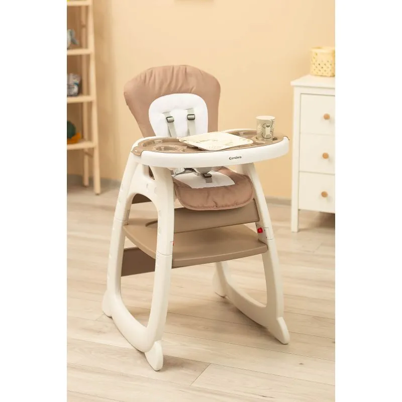 Šo kvalitatīvo, stabilo barošanas krēsliņu bez piepūles var pārvērst no augsta barošanas krēsliņa uz galdiņu ar krēsliņu;