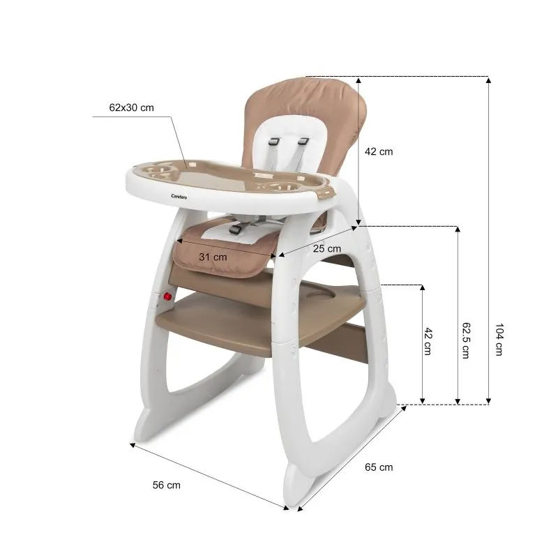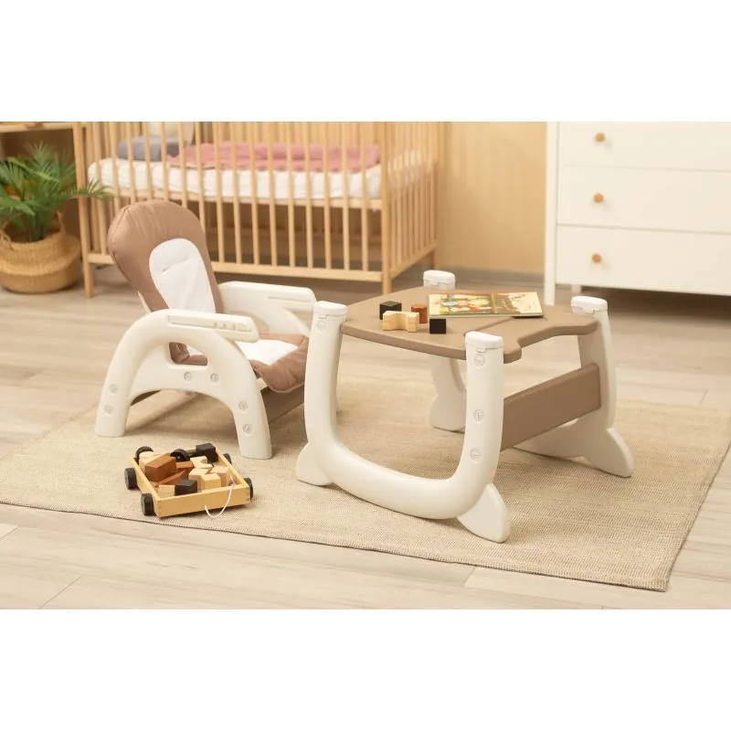 Baro krēsliņš bez piepūles pārveidojas no augstā barošanas krēsliņa par galdiņu ar krēsliņu. Izturīga konstrukcija un ērta sēdvieta.