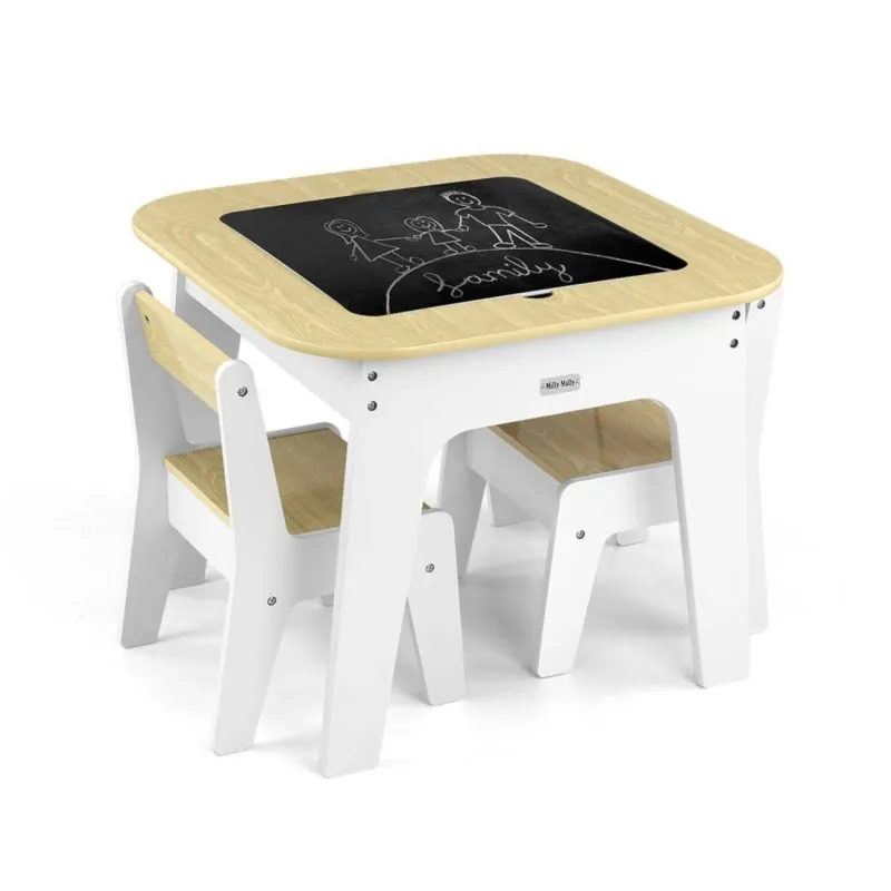 Milly Mally bērnu mēbeļu komplekts Olaf - Galdiņš un divi krēsli, Balts