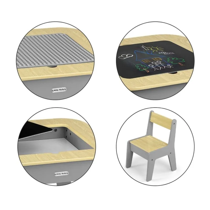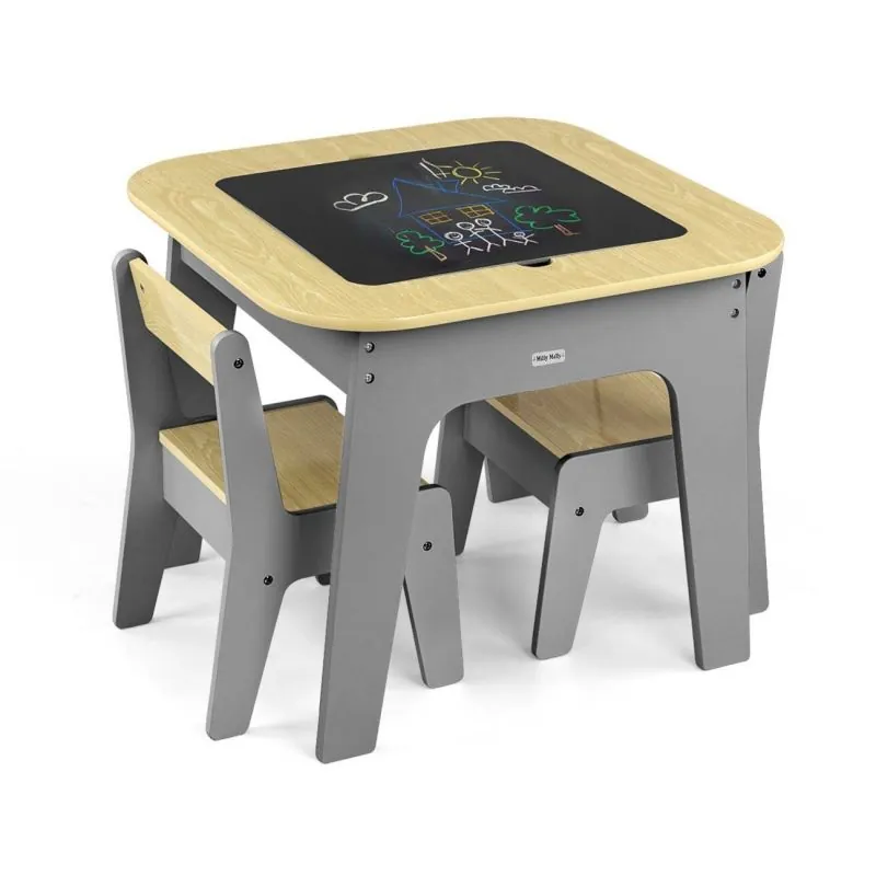 Milly Mally bērnu mēbeļu komplekts Olaf - Galds un divi krēsli, Pelēks Tumši Pelēks