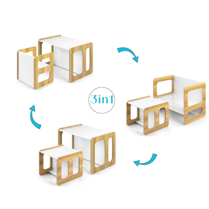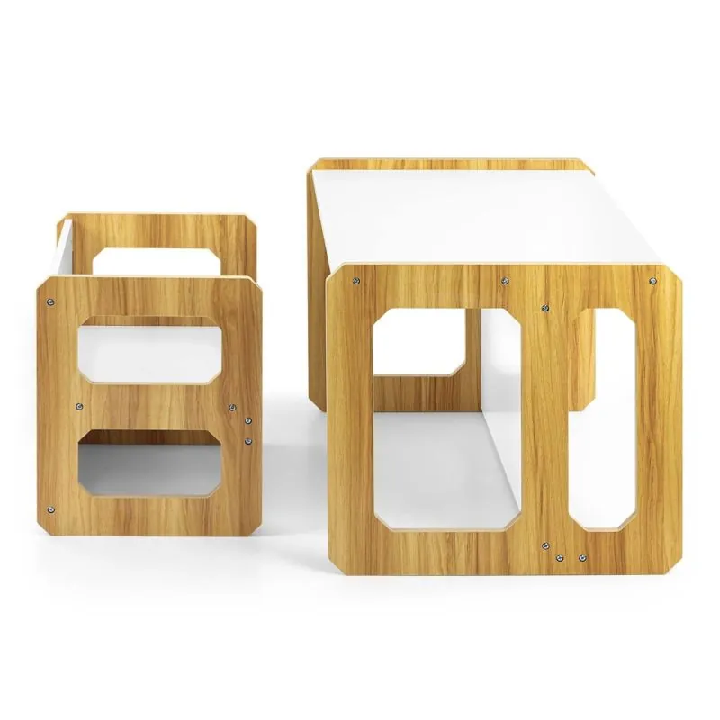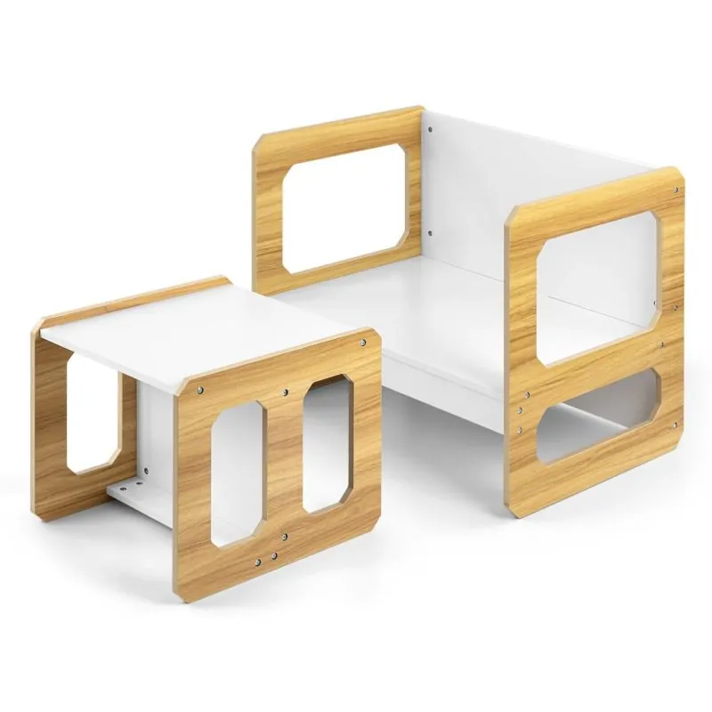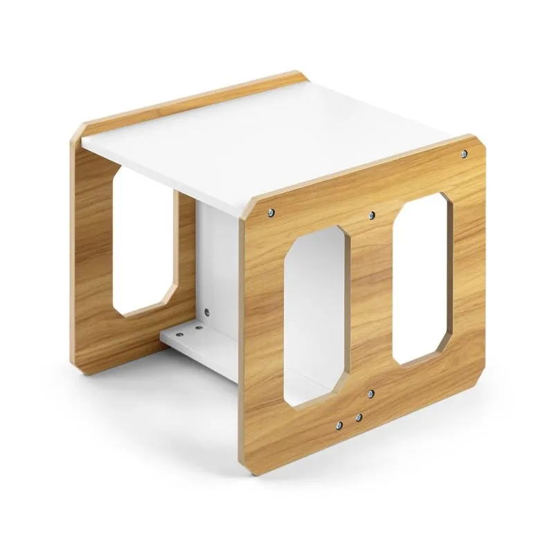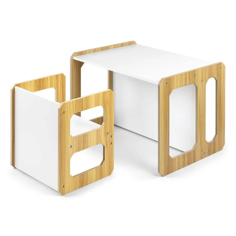 Galdu var pārveidot par lielāku krēslu, bet krēsliņš ir lieliski piemērots kā mazāks galdiņš vai krēsls bez atzveltnes vecākam bērnam;
