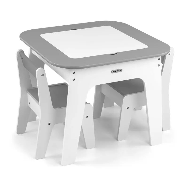 Milly Mally bērnu mēbeļu komplekts Olaf - Galdiņš un divi krēsli, Pelēks