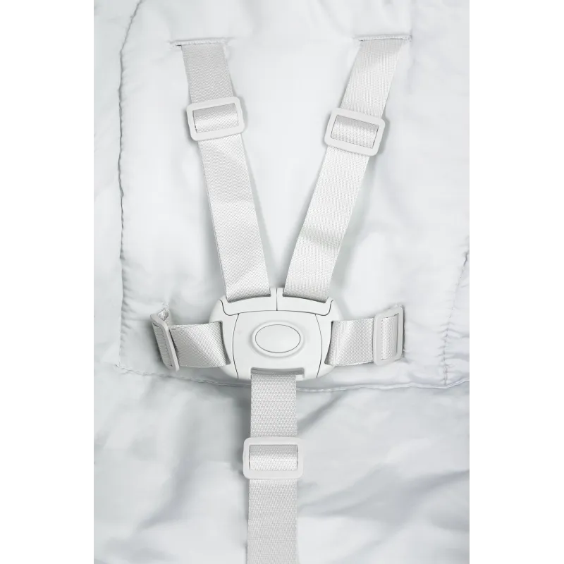 Aizsargjostas un papildu mīksts ieliktnis nodrošina stabilu mazuļa pozīciju, un viegli tīrāmais polsterējums ļauj ātri un ērti tīrīt;