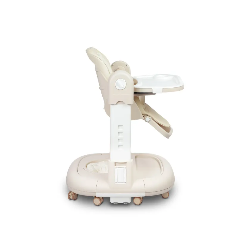 Noņemamais dubultais paliktnis ļauj viegli uzturēt tīrību ēšanas laikā, un augstuma regulēšana ļauj pielāgot krēslu pie galda;