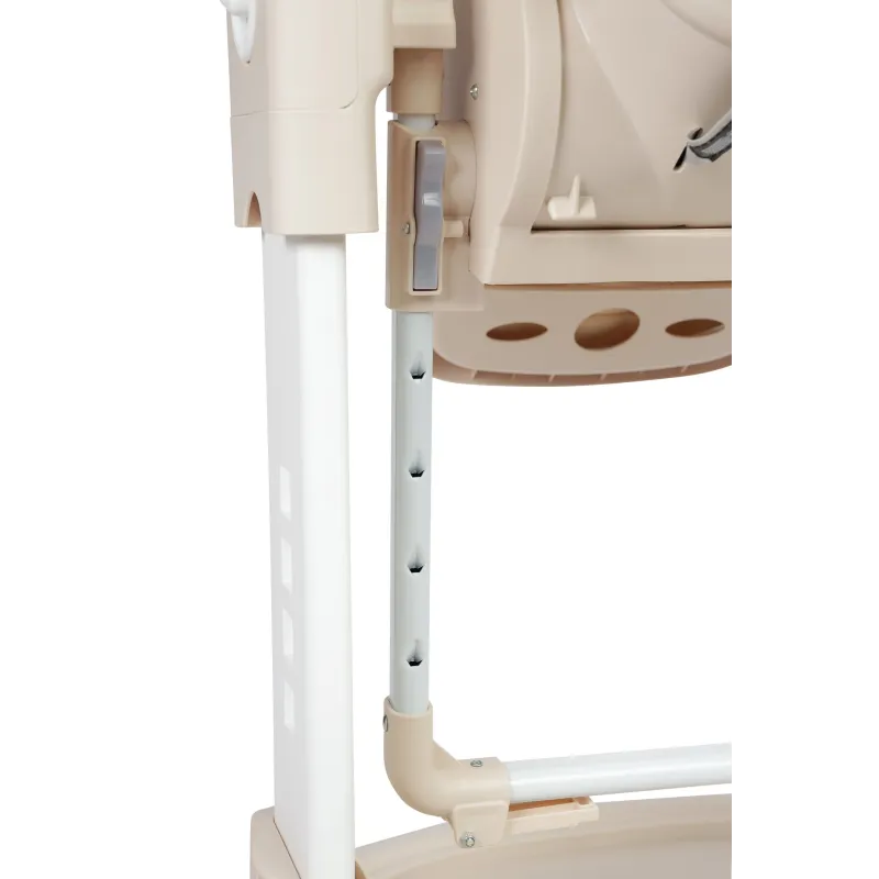 5 pozīciju sēdekļa augstuma regulēšana ļauj ideāli piekļauties pie galda, un regulējamais paliktņu attālums nodrošina komfortu un brīvību maltītes laikā.