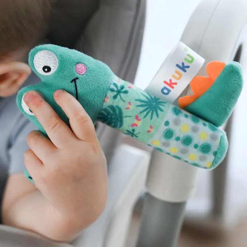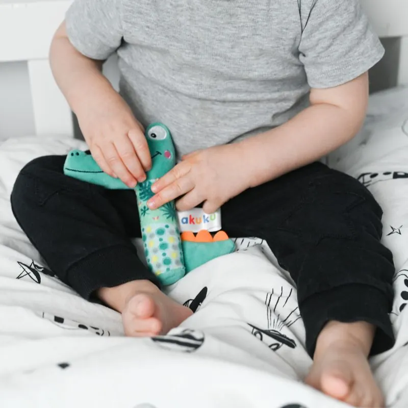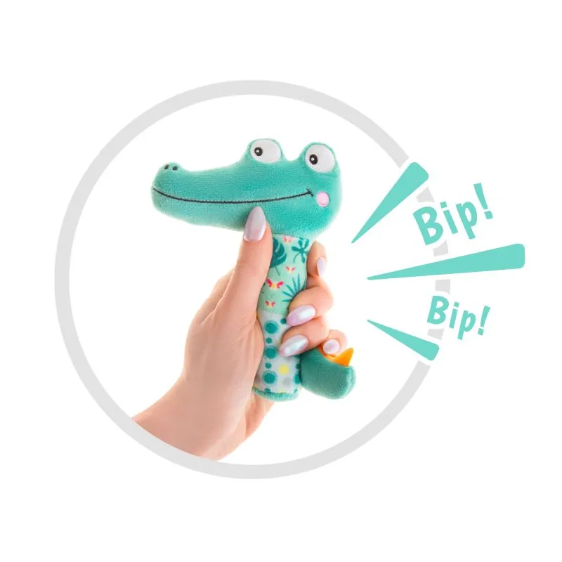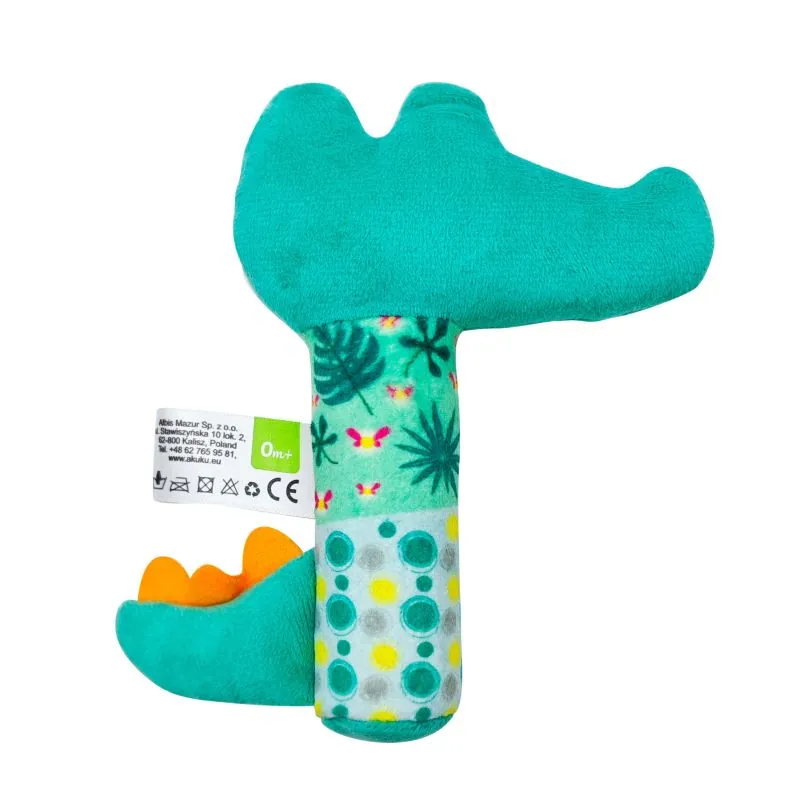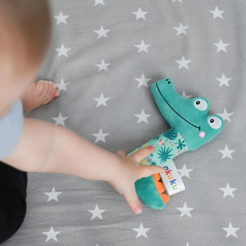 Ērti turēt mazā rociņā plīša rotaļlietu krokodilu. Paredzēts bērniem no dzimšanas.