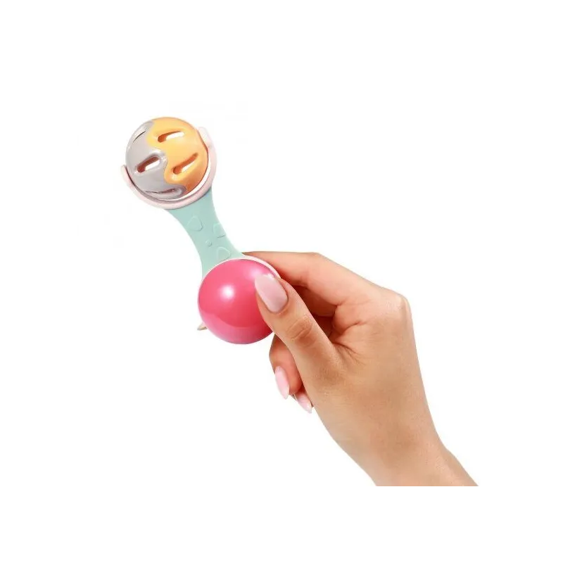 Pateicoties ērtai konstrukcijai, mazulis var viegli turēt grabuli rociņās;