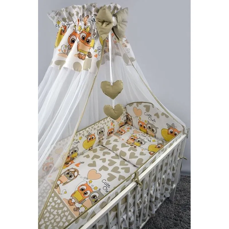 Baldahīns no tilla.;Segas pārvalks 120/90 cm.;Spilvens 40/60 cm.;Segas pārvalks 120/90 cm.;Spilvendrāna 40/60 cm.;Gultas malas aizsargs 360 cm. (visapkārt gultas perimetram).