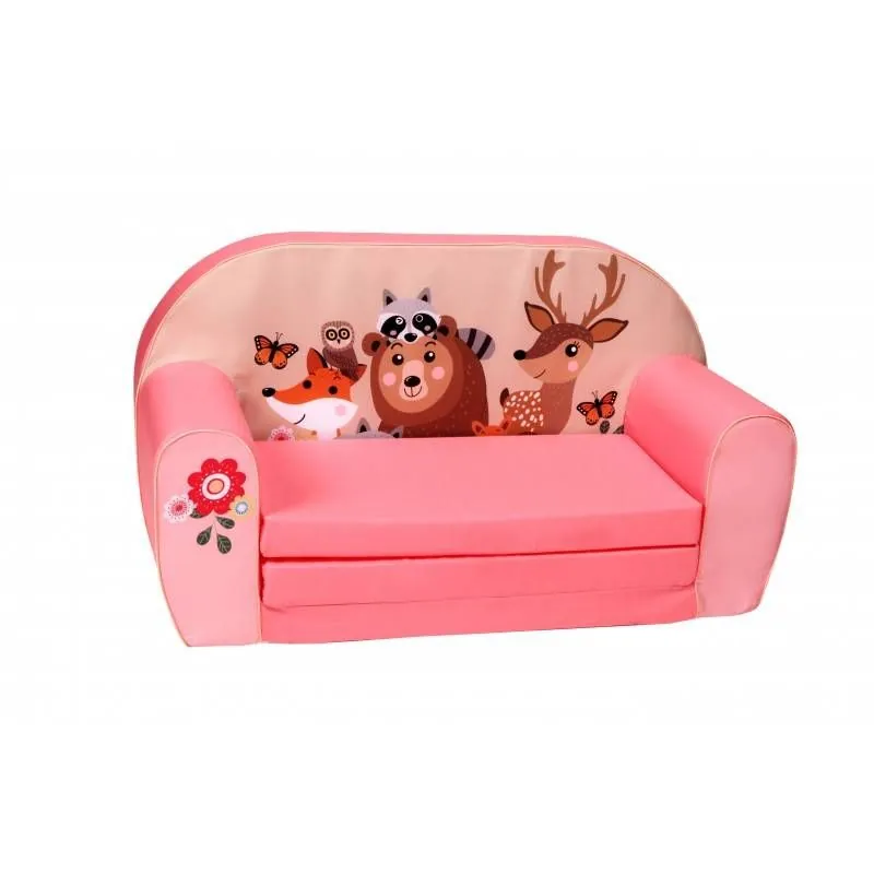 Mīksts bērnu rozā dīvāns - "Meža iemītnieki"
