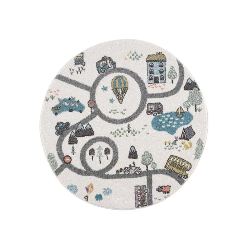 Krēmkrāsas paklājs - "Pilsēta" 120 x 120cm apaļš