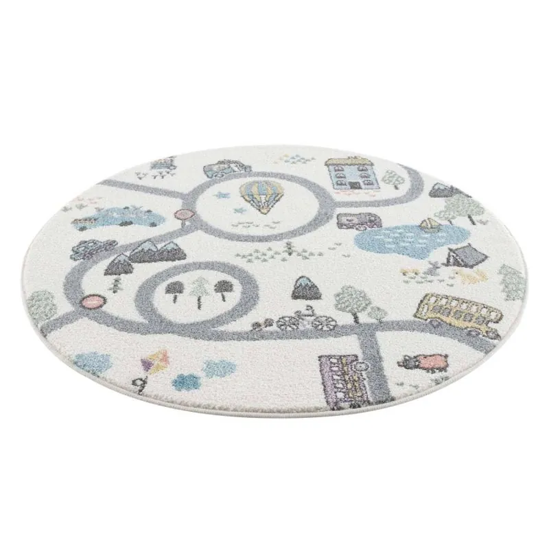 Krēmkrāsas paklājs - "Pilsēta" 160 x 160cm apaļš