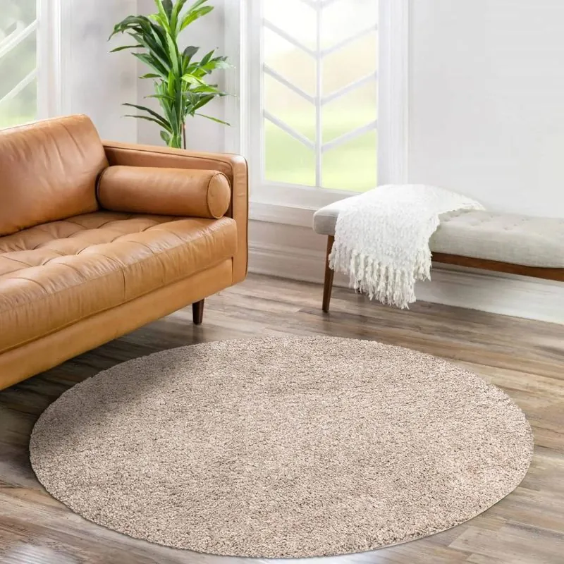 Garāka kaudzes apaļais paklājs "City Shaggy", smilšu krāsas 120x120 cm.
