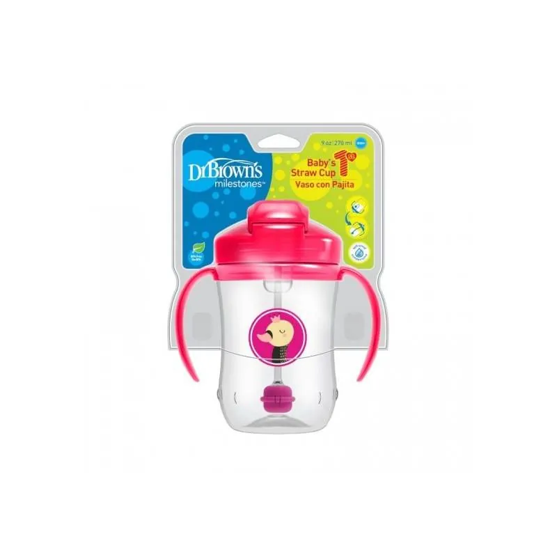 DR.BROWN'S pudelīte ar salmiņu un svaru 270ml, rozā