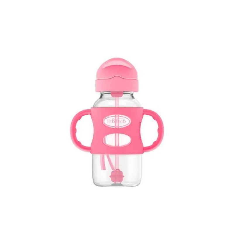 DR.BROWN'S pudelīte ar platu kakliņu ar salmiņu un svaru, rozā, 270 ml