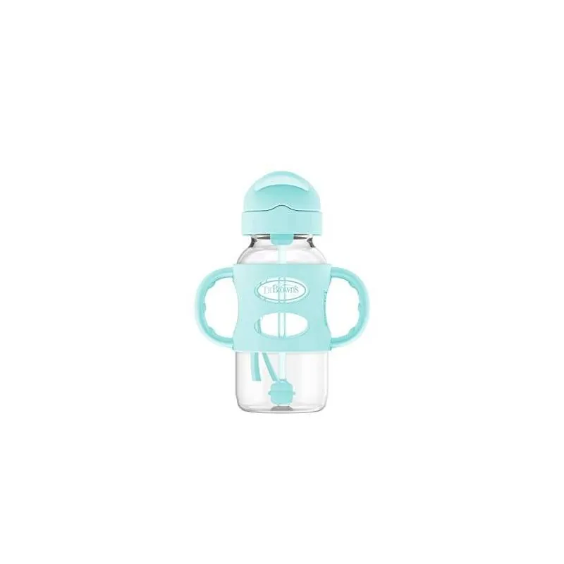 DR.BROWN'S pudelīte ar platu kaklu ar salmiņu un svaru, zaļa, 270 ml