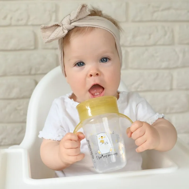 Tas ir apmācību krūze, tādēļ var dzert no jebkuras krūzes vietas, tāpat kā no pieaugušo krūzes.