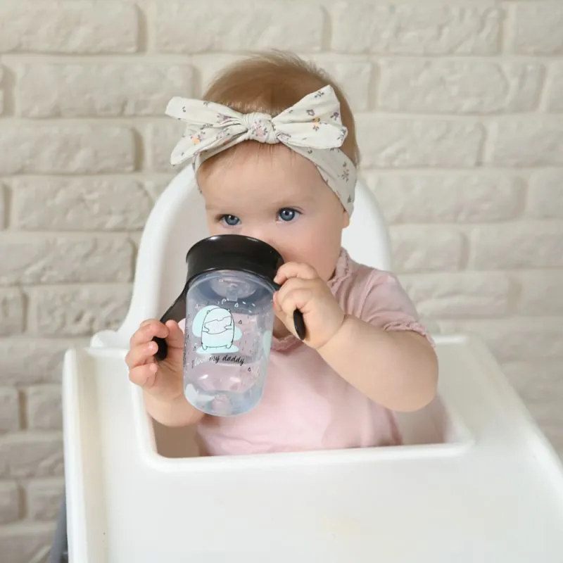 Tas ir apmācību krūze, tādēļ var dzert no jebkuras krūzes vietas, tāpat kā no pieaugušo krūzes.
