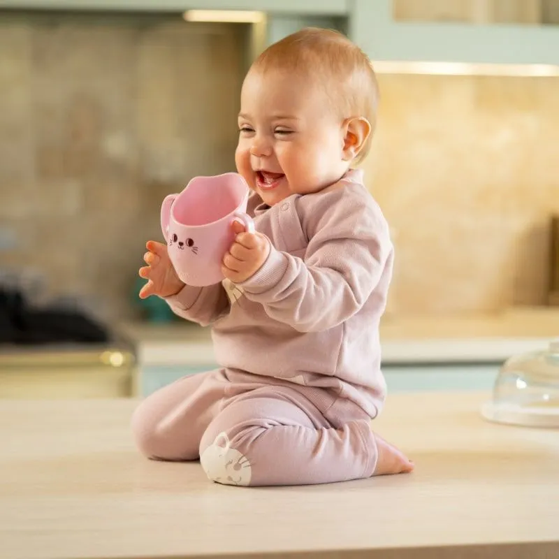 Īpaša krūzes mala atvieglo bērna dzeršanu, tāpēc nav nepieciešams pārāk daudz atliekt galvu, tādējādi samazinot aizrīšanās risku;