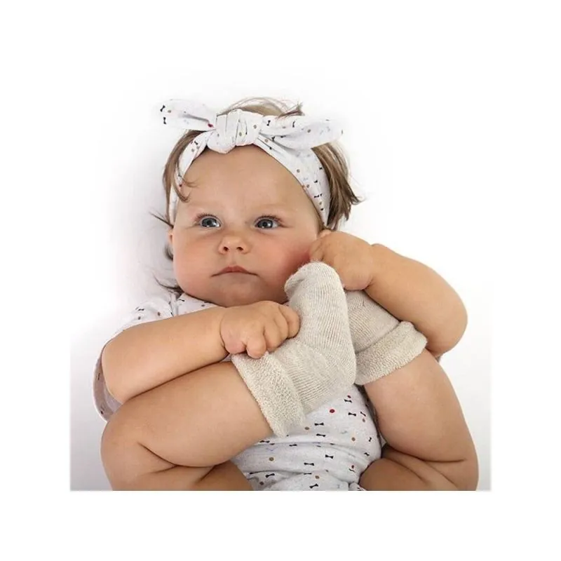 Frotē zeķītes zīdainim, izgatavotas no OEKOTEX sertificētas, maigas merino vilnas.