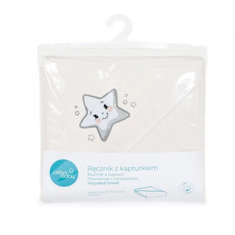 Kapuce dvielis CebaBaby 100x100cm, krēmkrāsas, zvaigzne