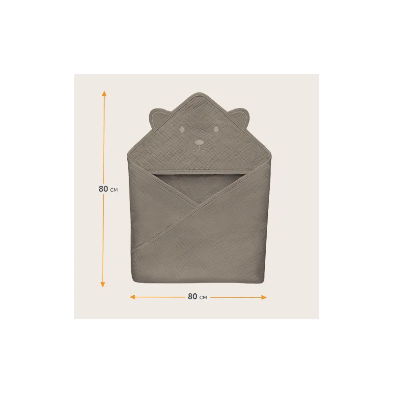 Lionelo muslīna dvielis ar kapuci 80x80 cm, smilškrāsas kapučīno