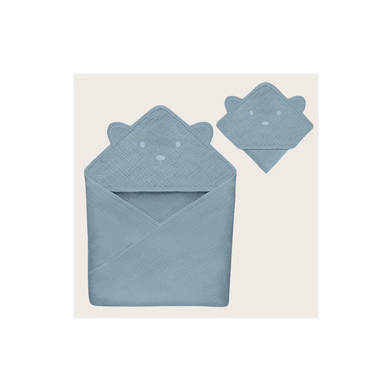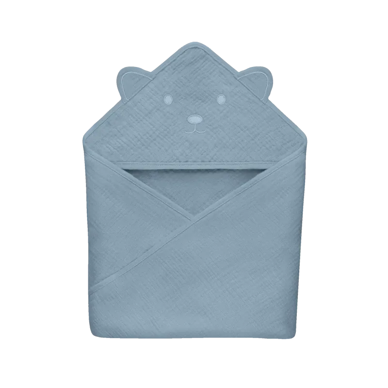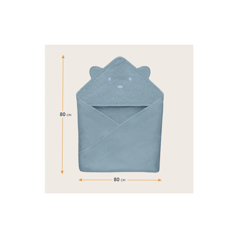 Lionelo muslīna dvielis ar kapuci 80x80 cm, pelēks debesis