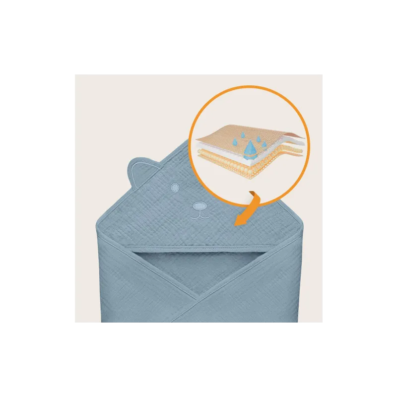 „Lionelo“ muslīna dvielis ar kapuci garantē pozitīvu pieredzi jūsu bērnam – dvielis ir mīksts un viegls, lieliski uzsūc mitrumu.