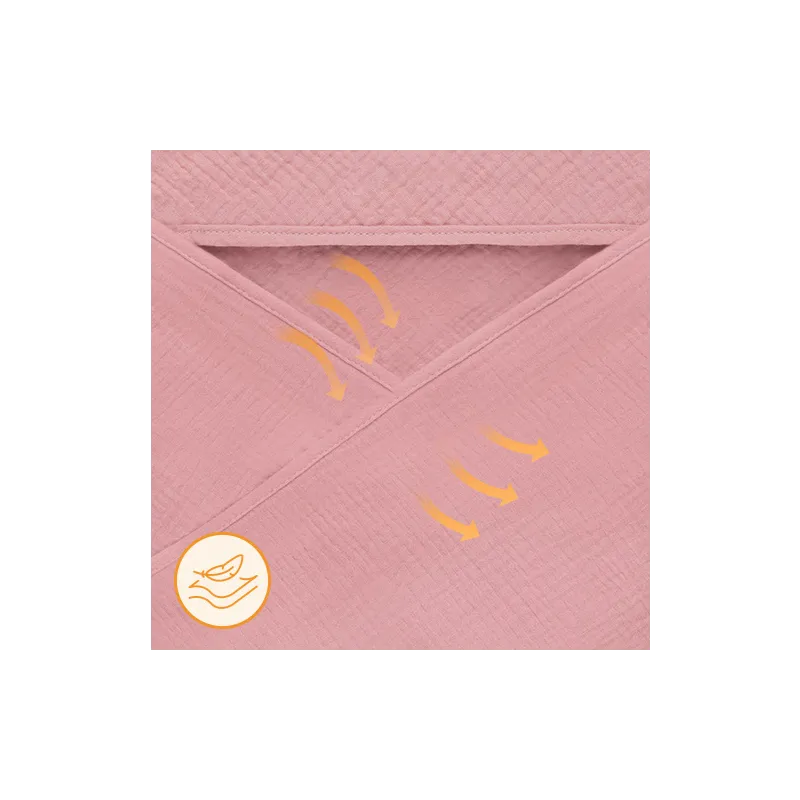 Lionelo muslīna dvielis ar kapuci 80x80 cm, rozā mazulis