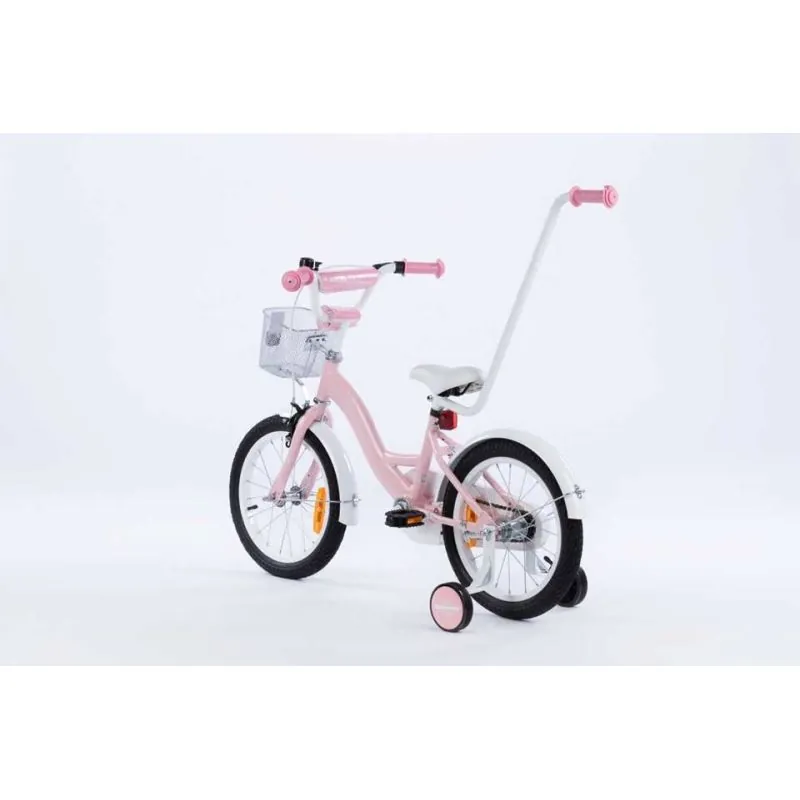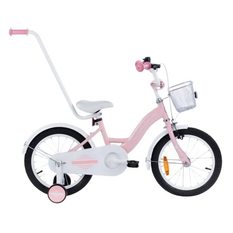 Kvalitatīvs velosipēds ar 16 collu riteņiem.Izgatavots no kvalitatīviem materiāliem, ievērojot augstākos kvalitātes un drošības standartus. Velosipēds lieliski piemērots braucieniem pilsētā un ārpus tās.Sānu riteņi ar regulēšanu - izjaucami, kad tie vairs nav nepieciešami.Plats tērauda rāmis.Neslīdoši, gumijas rokturi ar sānu aizsardzību, lai, tuvojoties sienai, nesavainotu rokas.Regulējama augstuma stūre.Tērauda aploki.Riteņu izmērs 16".Riepas ar dziļu protektoru, kas lieliski izmet grants akmeņus.Regulējama augstuma sēdeklis.Uz stūres ir rokas bremze, kas bremzē priekšējo riteni.Aizmugurējais ritenis tiek bremzēts ar pedāļu atpakaļgaitu.Ķēde pilnībā pārklāta, lai netīrītu bērna drēbes un kājas.Uz stūres pieskrūvējams metāla groziņš.Zvans.Atstarotāji aizmugurē un uz riteņiem.