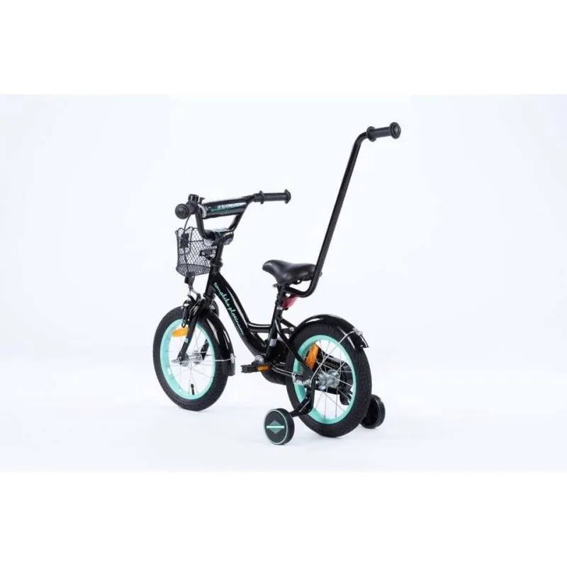 Kvalitatīvs velosipēds ar 14 collu riteņiem.Izgatavots no kvalitatīviem materiāliem, ievērojot augstākos kvalitātes un drošības standartus. Velosipēds lieliski piemērots braucieniem pilsētā un ārpus tās.Sānu riteņi ar regulēšanu - izjaucami, kad tie vairs nav nepieciešami.Plaša tērauda rāmis.Neslīdoši, gumijas rokturi ar sānu aizsardzību, lai, tuvojoties sienai, nesavainotu rokas.Regulējams stūres augstums.Tērauda aploces.Riteņu izmērs 14".Riepas ar dziļu protektoru, kas lieliski izmet grants akmeņus.Regulējams sēdekļa augstums.Uz stūres ir rokas bremze, kas bremzē priekšējo riteni.Aizmugurējais ritenis tiek bremzēts ar pedāļu atpakaļgaitu.Ķēde pilnībā pārklāta, lai netīrītu bērna drēbes un kājas.Uz stūres pieskrūvējams, metāla groziņš.Zvans.Atstarotāji aizmugurē un uz riteņiem.